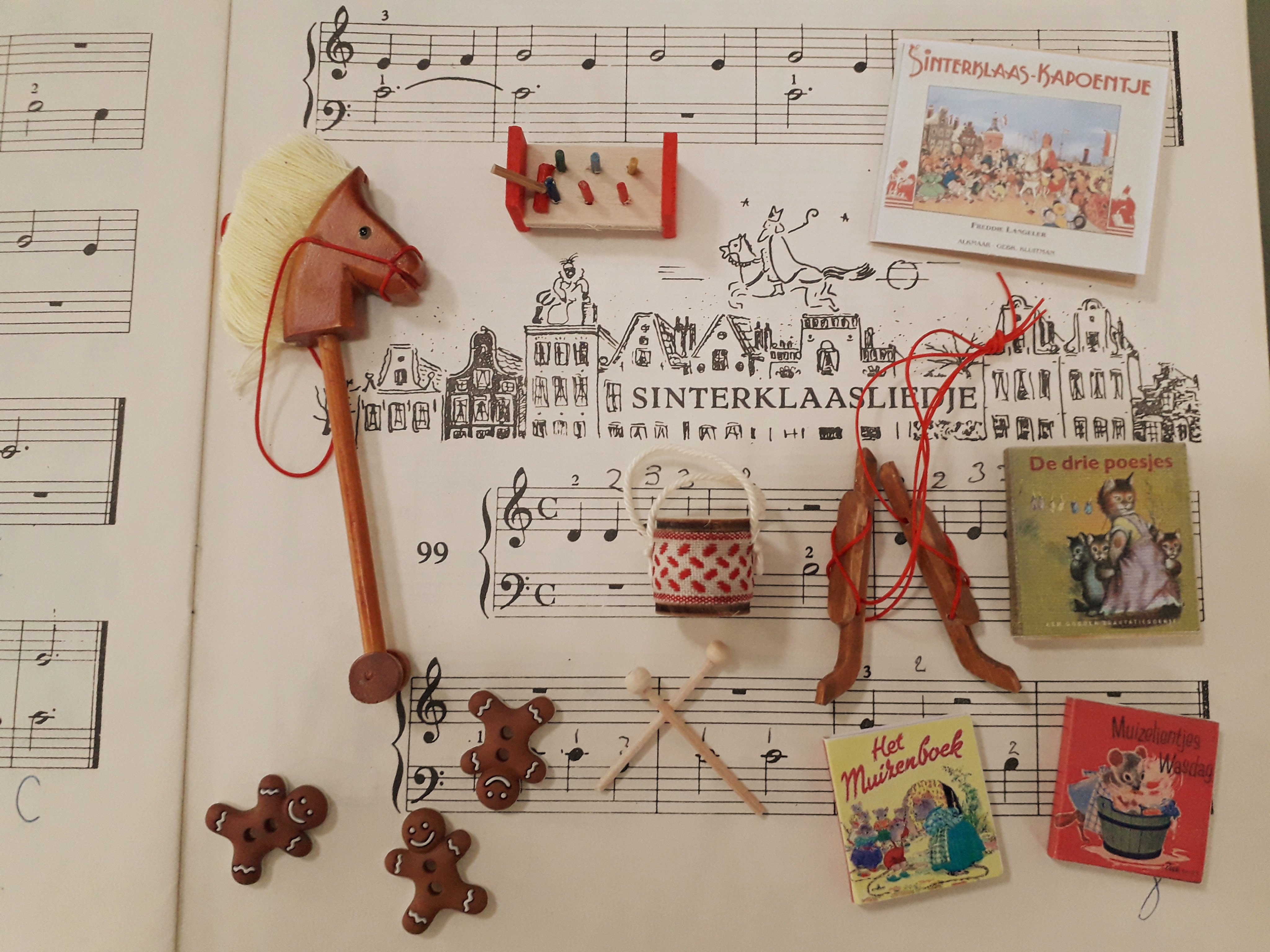 Recept uit sprookjesbos, hét boek voor dit oliebollen recept, meel, beslagkom, garde, weegschaal, keukengerei -om de oliebollen uit de olie te scheppen als ze boven komen drijven- een pan om ze in te bakken, zoutpotje met mini houten schepje [nieuw], poedersuiker- is nog in ontwerp- en natuurlijk bestek en bordje om ze op te eten...